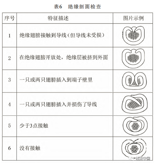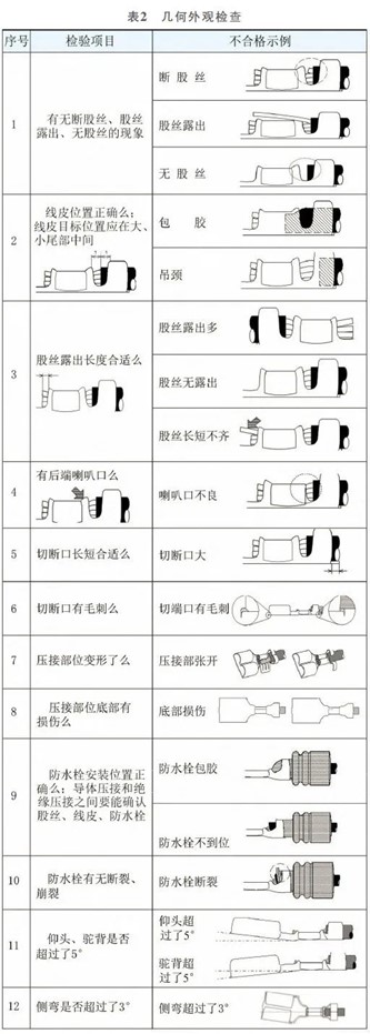 压接过后,可以从表2中列出的项目进行几何外观检查,以判断压接外观是否合适。
