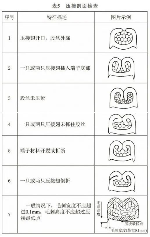表5中列出的截面特征通常认为不可接受,压接时应加以注意。